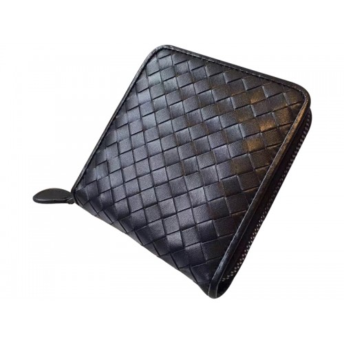 Portofel Bottega Veneta, cu fermoar în două rânduri, în intrecciato negru