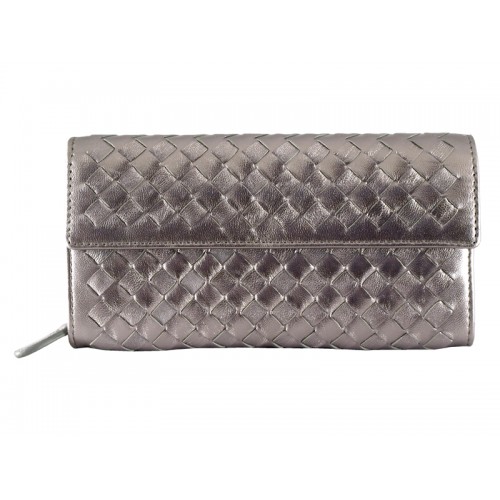 Portofel Bottega Veneta Intrecciato Nappa Continental Cu Buton Gri Argintiu
