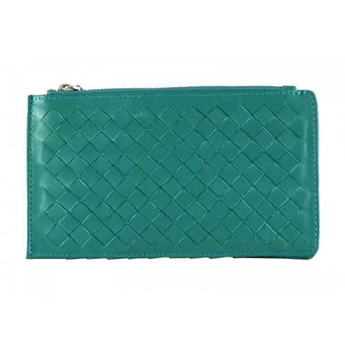 Portofel Bottega Veneta Intrecciato din piele Nappa, cu fermoar, verde