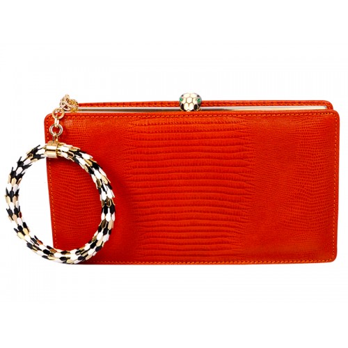 Poșetă Bvlgari Serpenti Înrămată În Piele De șopârlă Portocaliu
