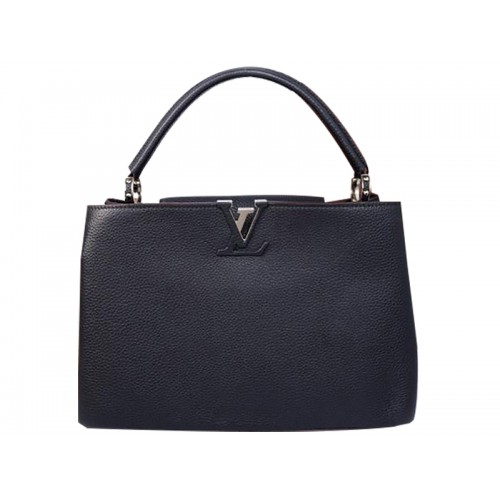 Ia numele de la rue des Capucines din Paris, unde Louis Vuitton și-a deschis primul magazin în 1854, geanta Capucines atemporal elegantă este o dovadă a măiestriei din piele fină. În piele Taurillon integrală, combină detalii rafinate, inclusiv un semi- mâner rigid asigurat de inele asemănătoare bijuteriilor, cu un spațiosformă funcțională care oferă două moduri: în exterior pentru a dezvălui conturul unei flori Monogram, sau în interior pentru a arăta inițialele LV.