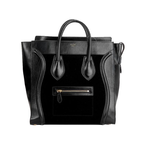 Celine Bagaj Mare Tote din Piele de Vițel Negru/Piele Întoarsă Negru