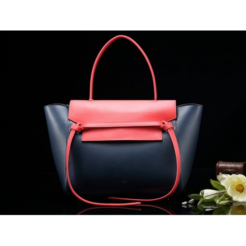 Geantă Celine Mini Belt din piele de vițel netedă, albastru noapte cu roșu indian