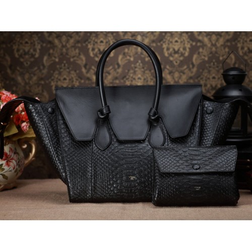 Geantă Celine Tie Nano cu mâner superior din piele neagră cu model piton