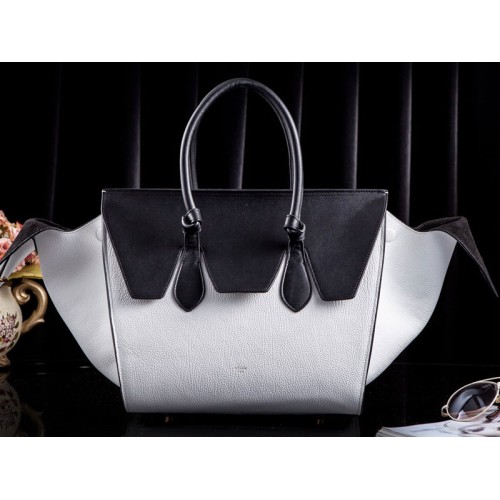 Geantă Celine Tie Nano cu mâner superior din piele albă și neagră