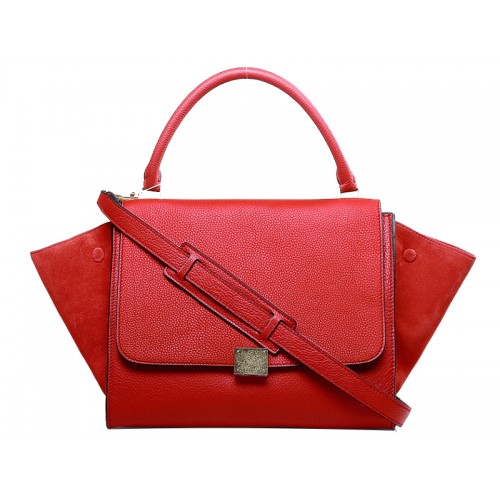 Geantă de umăr Celine Trapeze din piele de vițel cu piele întoarsă roșie