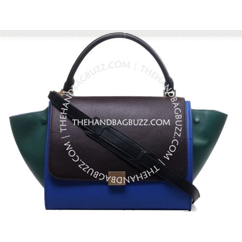 Geantă de umăr Celine Trapeze din piele de vițel multicoloră maro/albastru/verde