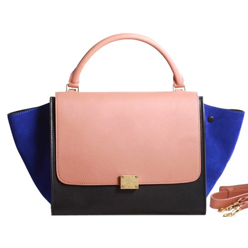 Geantă de umăr Celine Trapeze multicoloră din piele de vițel roz/negru/întoarsă albastră