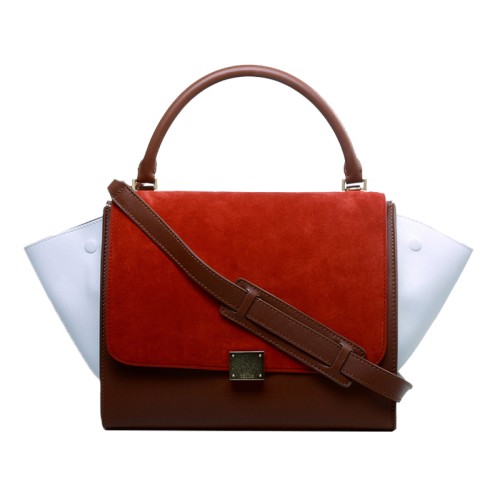 Geantă de umăr Celine Trapeze din piele de vițel multicoloră, roșie/maro/albă