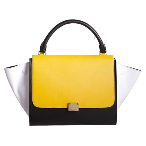 Geantă de umăr Celine Trapeze din piele de vițel multicoloră, galbenă/neagră/albă
