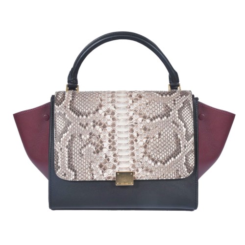 Geantă de umăr Celine Trapeze din piele de piton crem/negru/vin