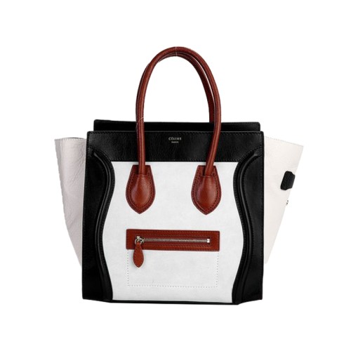 Celine Bagaj Mediu Tote din Piele de Vițel Negru și Crem / Piele Întoarsă Crem