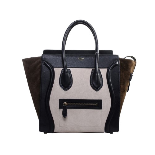Celine Luggage Tote Medium din piele de vițel bej deschis/întoarsă, măsliniu