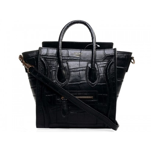 Celine Bagaj Mini Tote din piele neagră de crocodil