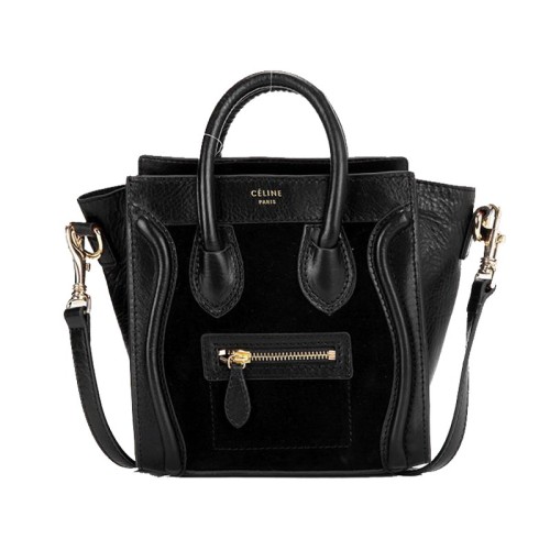 Celine Bagaj Mini Tote din piele de vițel neagră/întoarsă neagră