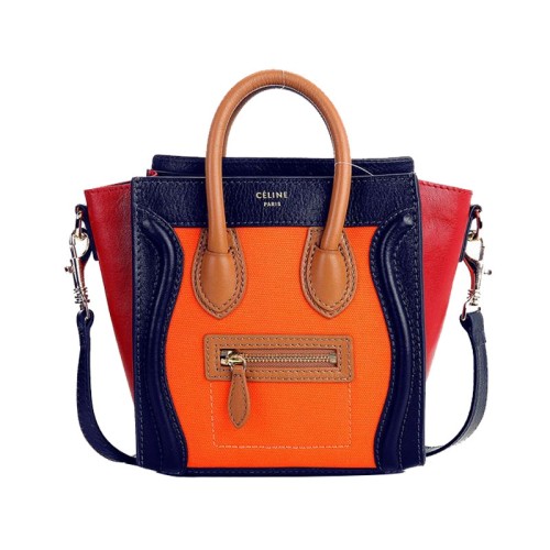 Celine Bagaj Mini Tote din piele de vițel albastră/pânză portocalie