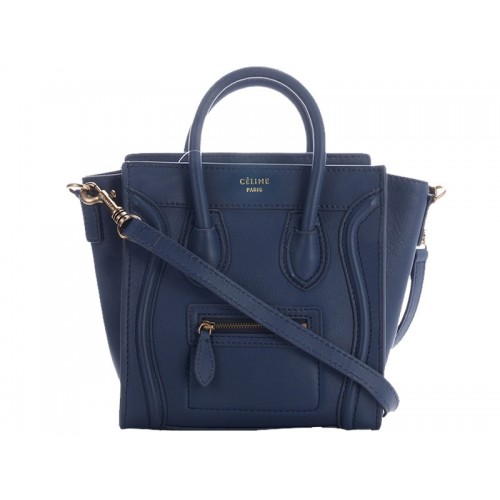 Celine Bagaj Mini Tote din piele de vițel albastru închis