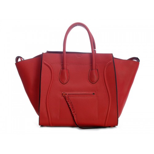 Geantă Celine Luggage Phantom Square Tote, culoarea cireșei, cu finisaje negre