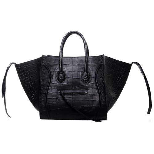 Geantă Celine Luggage Phantom Square Tote Bag din piele crocodil neagră