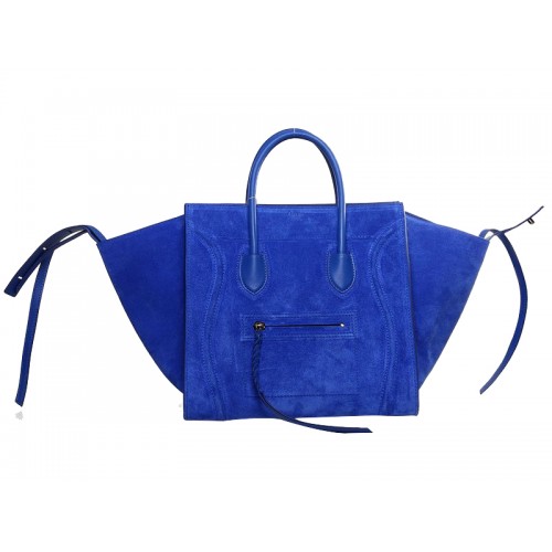 Geantă Celine Luggage Phantom Square Tote din piele întoarsă, albastru strălucitor