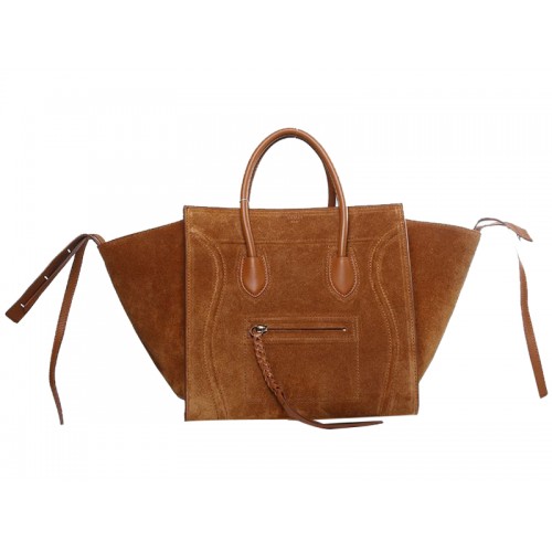 Geantă Celine Luggage Phantom Square Tote Bag Suede Leather Camel