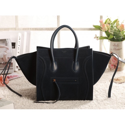 Geantă Celine Luggage Phantom Square Tote din piele întoarsă, albastru închis