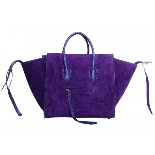 Geantă Celine Luggage Phantom Square Tote Bag Suede Leather Purple