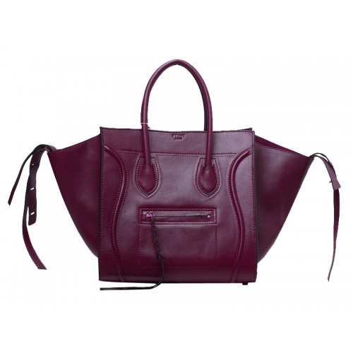 Geantă Celine Luggage Phantom Square Tote, vin, cu finisaje negre