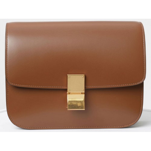 Geantă Celine medie clasică în cutie, piele de vițel, camel, 1641732