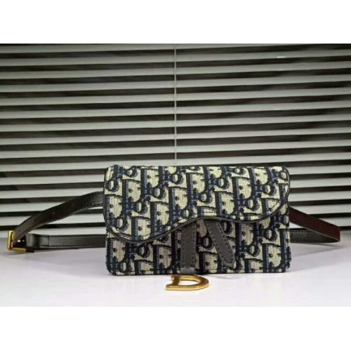 Husă cu centură cu șa din pânză jacquard oblică Dior cu detalii din piele de vițel.