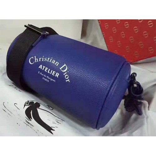 "Roller" pungă în piele de vițel cu granulație albastră denim cu "Christian Dior Atelier" print.