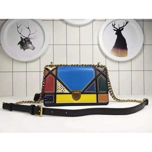 Geantă Dior Diorama din piele de vițel cu model patchwork, multicoloră, albastră