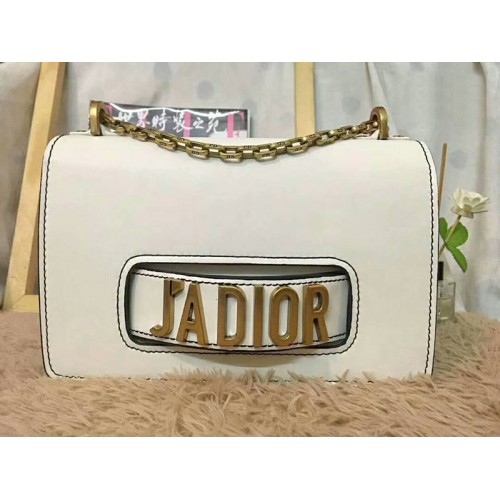 Geantă Dior J'Adior din piele de vițel cu accesorii aurii învechite, albă