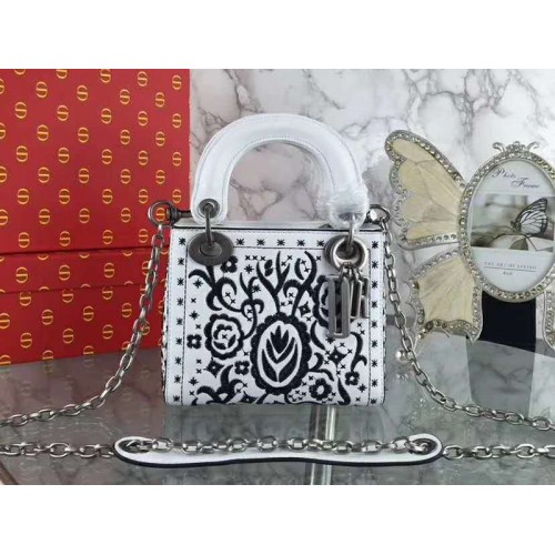 Geantă Dior Mini Lady Dior brodată albă