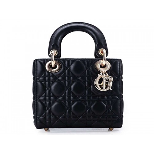 Geantă Dior Nano din piele, cu accesorii aurii, neagră