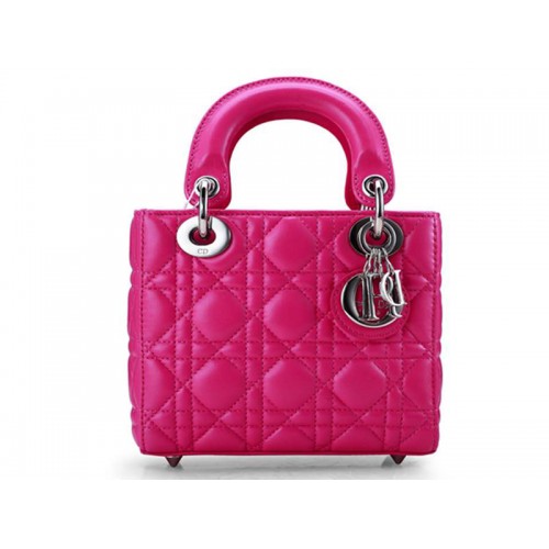 Geantă Dior Nano din piele, cu accesorii argintii, roz aprins