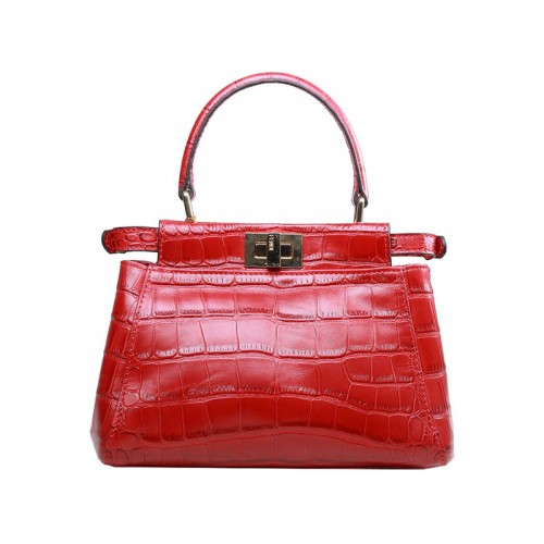 Geantă Fendi Iconic Mini Peekaboo din piele crocodil roșie