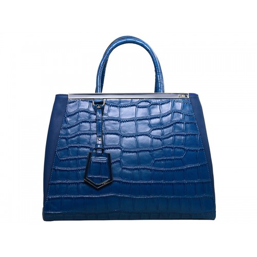 Geantă tote Fendi 2jours din piele de vițel, culoare crocodil, albastră