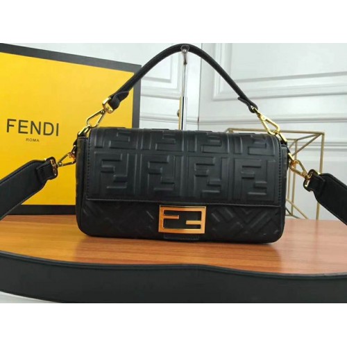Geantă Fendi Baguette din piele de miel neagră
