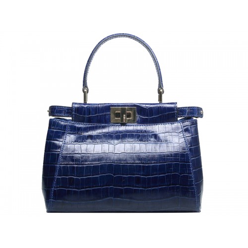 Geantă Fendi Iconic Mini Peekaboo din piele Croco albastră