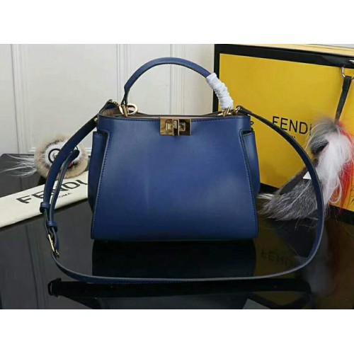 Geantă Fendi Peekaboo Essential din piele de vițel albastră