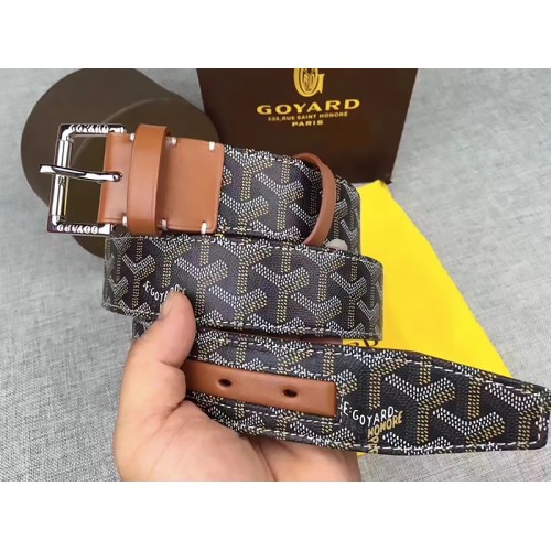 Curea din piele Goyard Chevron Goyardine neagră cu garnitură din piele maro