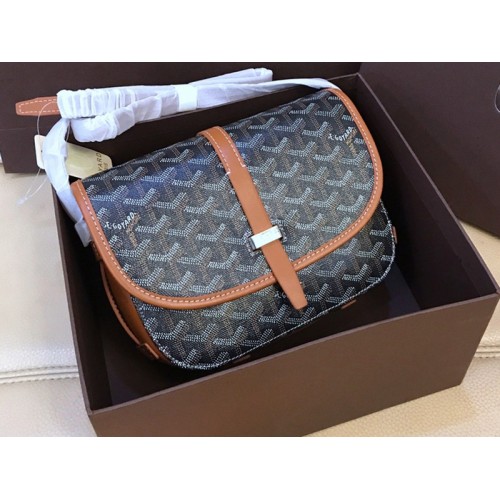 Geantă de mână Goyard Goyardine Chevron neagră cu garnitură din piele maro