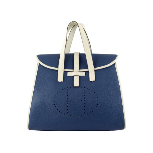 Geantă Hermes 08c Flap albastră cu garnitură din piele alb-gălbui