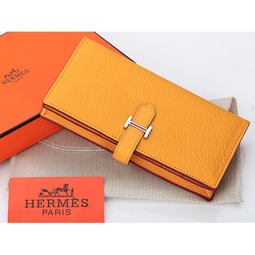 Portofel Hermes Dogon Togo Original din piele de vițel Bearn Japonaise cu două pliuri, galben
