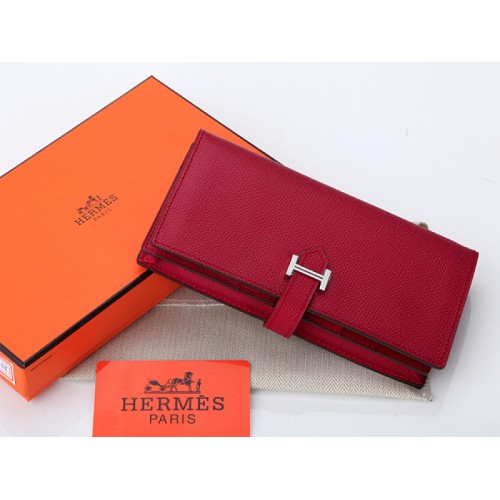 Portofel Hermes Epsom Original din piele de vițel Bearn Japonaise cu pliere, culoare vișinie