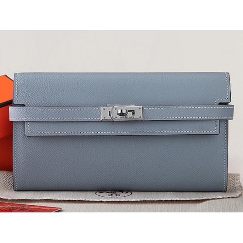 Portofel lung Hermes Epsom Original Calfskin Kelly gri albastru