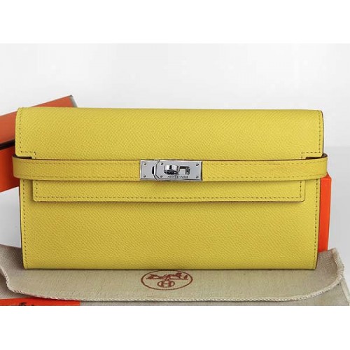 Portofel lung Hermes Epsom Original Calfskin Kelly galben lămâie