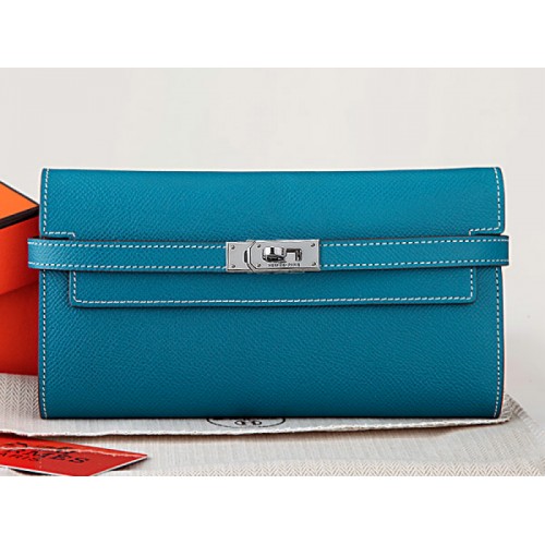 Portofel lung Hermes Epsom Original Calfskin Kelly, albastru mediu