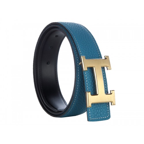 Curea lată din piele Hermes Togo cu cataramă H aurie albastră